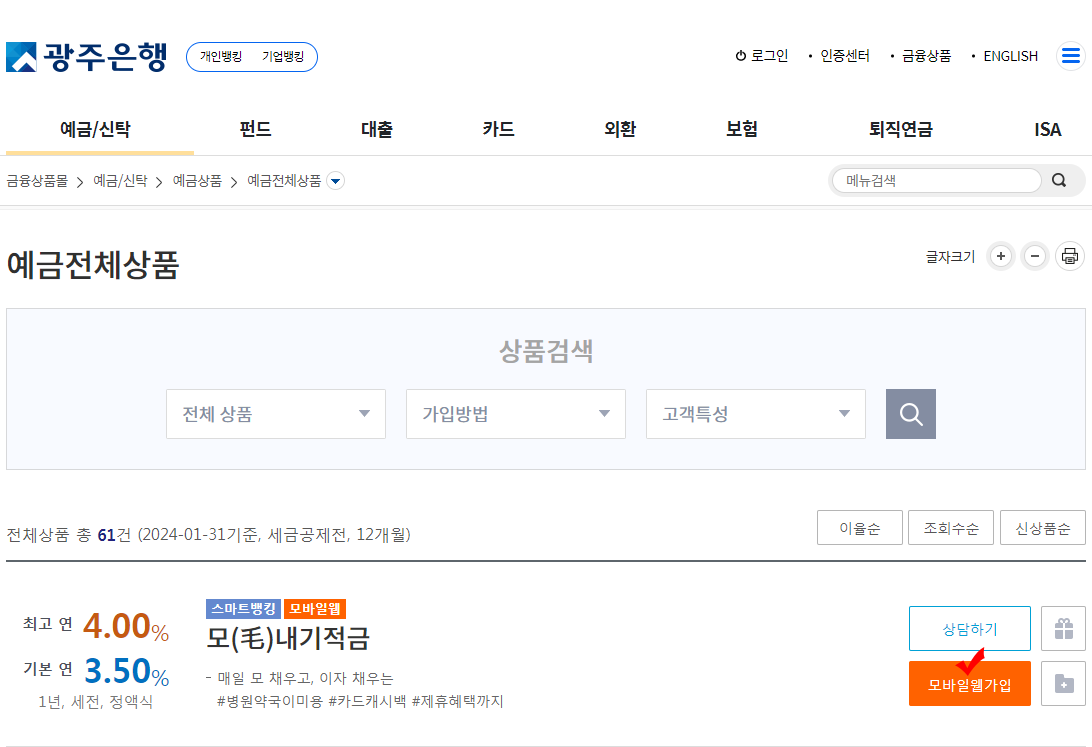 광주은행 모내기적금 모바일웹가입 방법