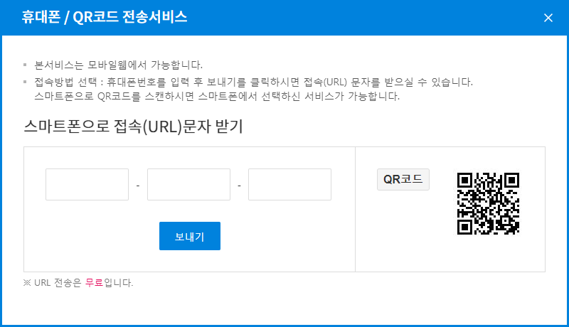 좌측의 스마트폰으로 접속하기 위한 URL을 입력 하시거나, QR코드를 인증하시면 됩니다.