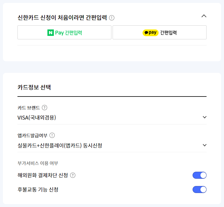 - 실물카드와 앱카드를 동시에 신청할 것인지 선택할 수 있음