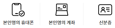 본인확인이 가능한 본인명의 휴대폰, 본인명의 계좌, 신분증을 필요로 합니다.