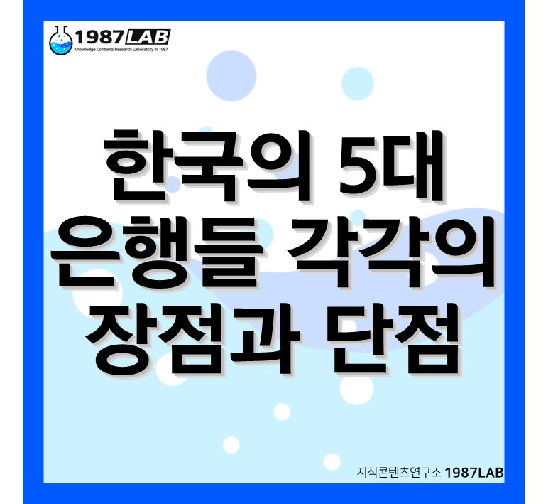 한국의 5대 은행들 이라는 은행들이 있습니다. KB국민은행, 신한은행, 우리은행, 하나은행, 그리고 기업은행을 일컬어 5대 은행 이라고 합니다. 이 은행들 각각의 장점과 단점을 알아보도록 하겠습니다.