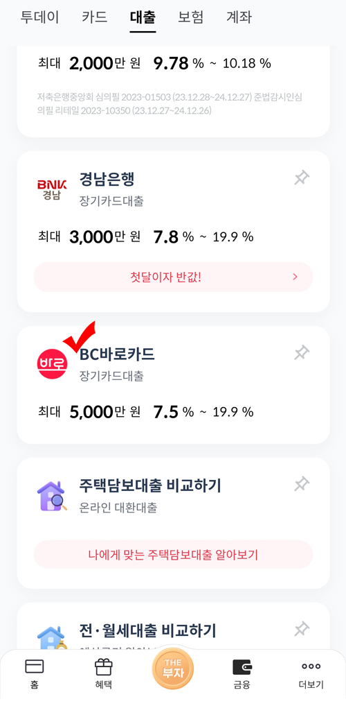 1. BC카드의 BC바로장기카드대출(카드론)