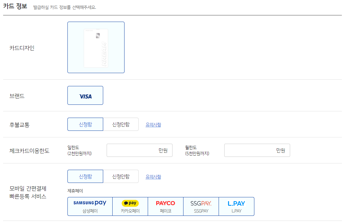 KREAM 우리카드의 경우 홈페이지에서 발급이 가능합니다.